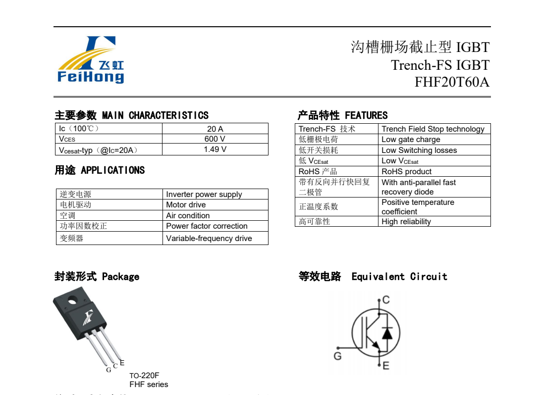 • 變頻器常用IGBT:FHF20T60A型號,電機(jī)驅(qū)動電路的優(yōu)選IGBT單管。 2023-07-13